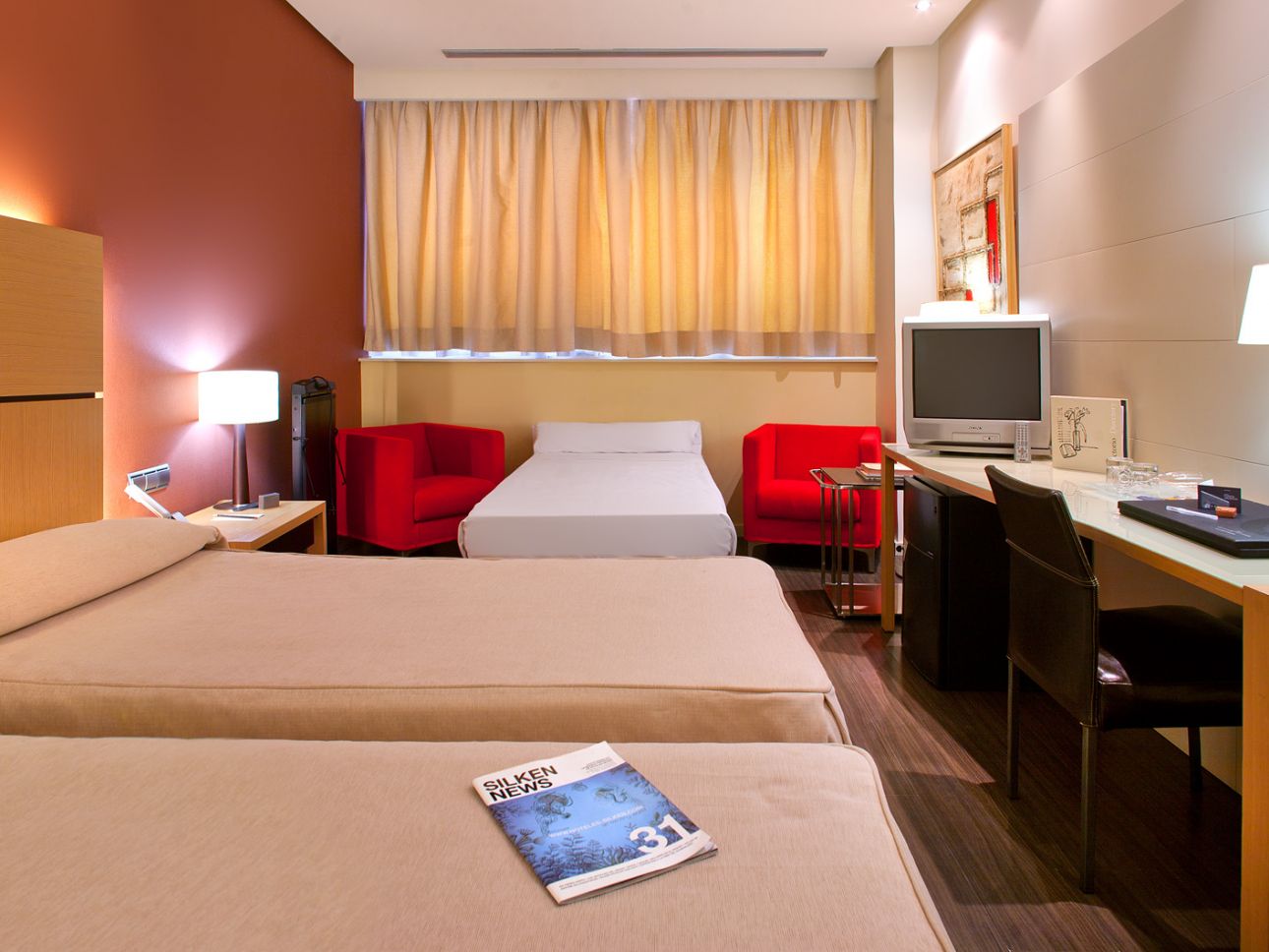 Las Silken Doble están equipadas con una cama de 1,50m x 2,00m, con la que tendrás garantizado un profundo descanso. Cuentan con conexión Wi-Fi gratuita, servicio despertador y periódico diario en recepción, televisión con más de 30 canales, teléfono con servicio de voz, caja de seguridad, minibar, control de climatización y un baño con bañera en su mayoría.